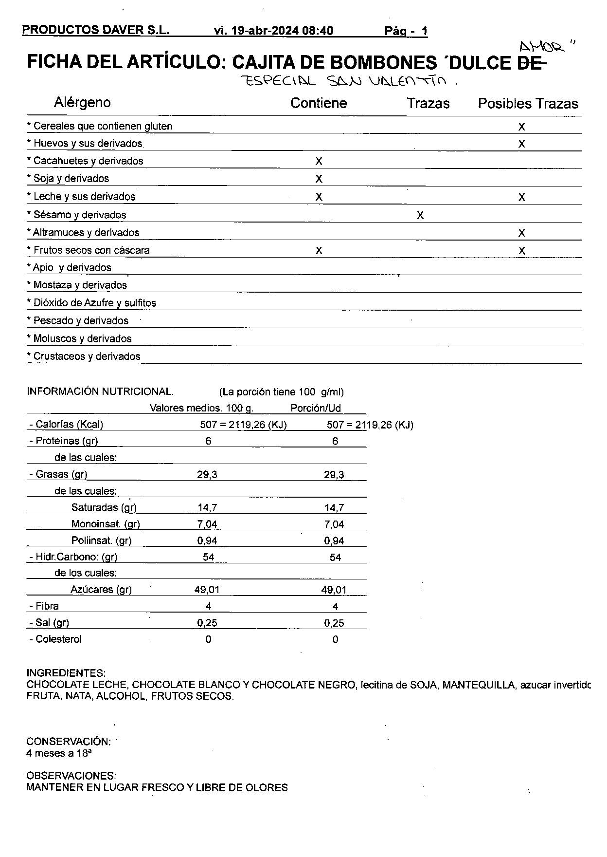 Cajita de bombones “Dulce amor” Especial San Valentín