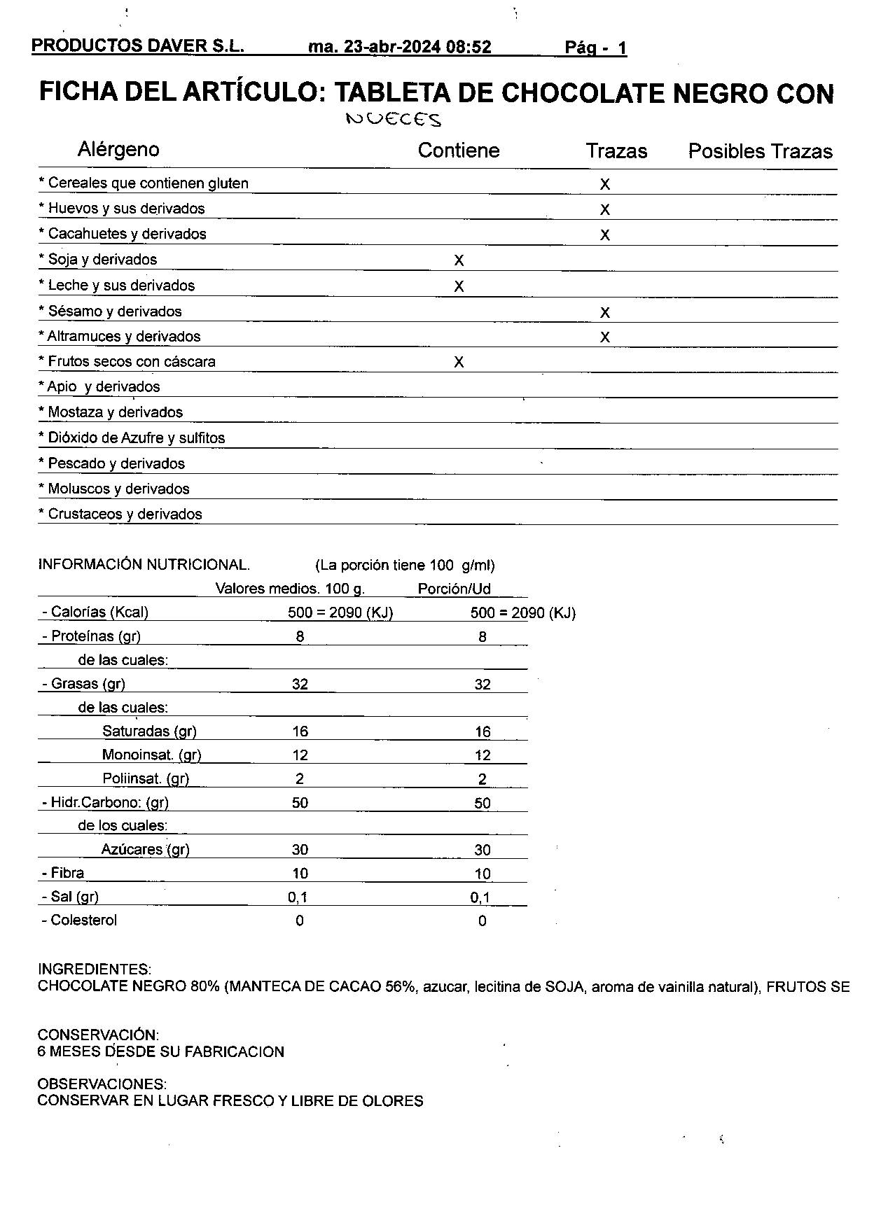 Tableta de chocolate negro con nueces